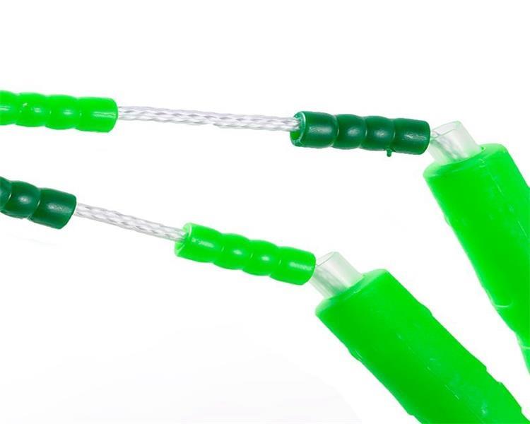 产品特点: 长度2.8M 重量:0.12KG 材质:PP 原装进口轴承,不易缠绕 手柄包胶,手感好又防滑 耐磨软珠节包裹,增加重量,有利于初学者学习跳绳,防冻环保材料,安全性高 长度可自由调节,适合不同身高的儿童。